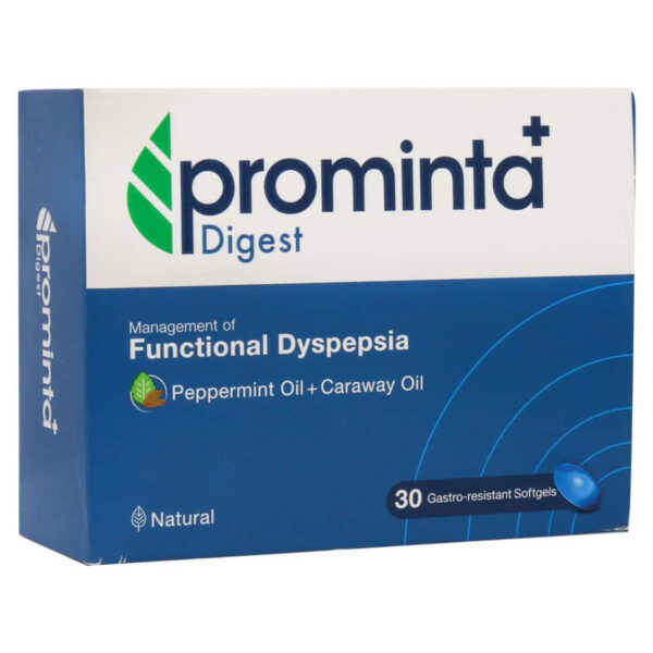 کپسول پرومینتا پلاس دایجست حاوی ترکیب روغن نعنا فلفلی و زیره بوده که برای بهبود علائم سوءهاضمه، کاهش نفخ و احساس پر بودن و سنگینی معده موثر بوده و به هضم راحت و سریع غذا کمک میکند.